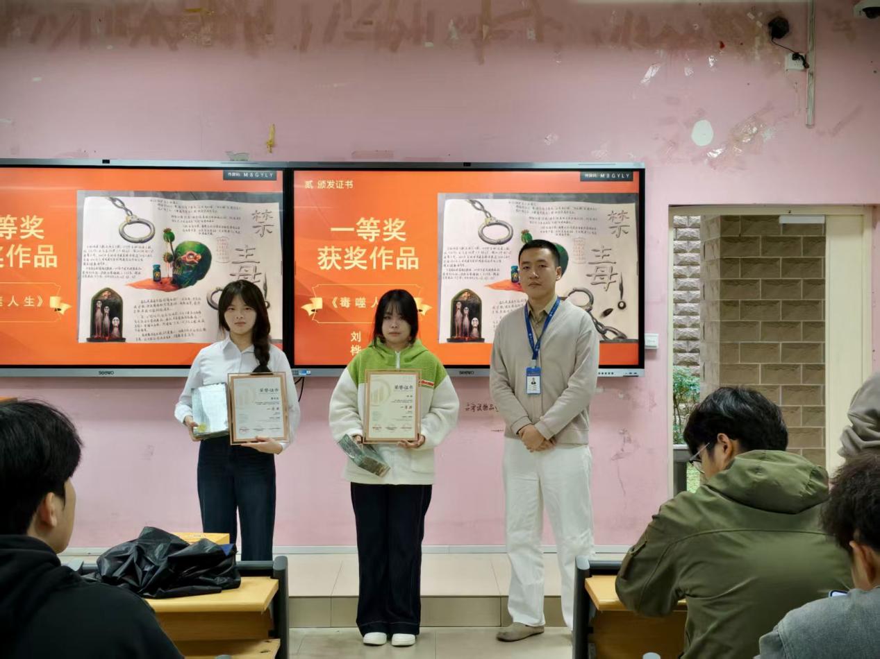 活动期间,累计收到作品28幅,禁毒作品内容丰富,涵盖了手抄报、绘画、短视频等多种形式。经严格评审,2025年11月4日中午12:00,本次禁毒作品征集活动暨颁奖仪式在自强楼1-3教室隆重举行,汽车学院辅导员、学生干部获奖者及班级代表共计84人出席了仪式。