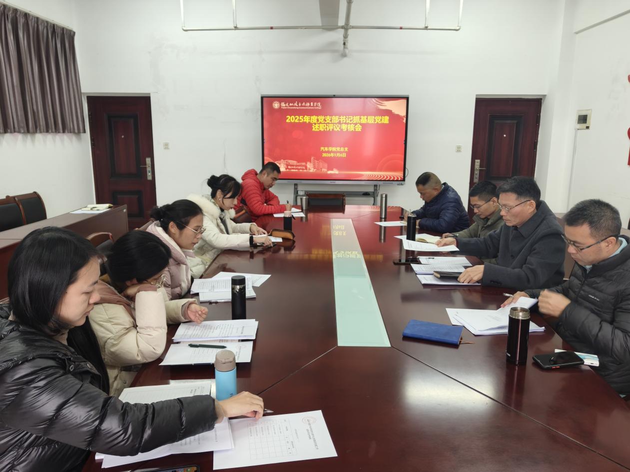 2026年1月6日,汽车学院2025年度党支部书记抓基层党建工作述职评议考核会议在鉴知楼910召开,汽车学院领导班子成员、总支委员、各党支部书记、副书记、组织员参加会议。会议由党总支书记蔡华锦主持。