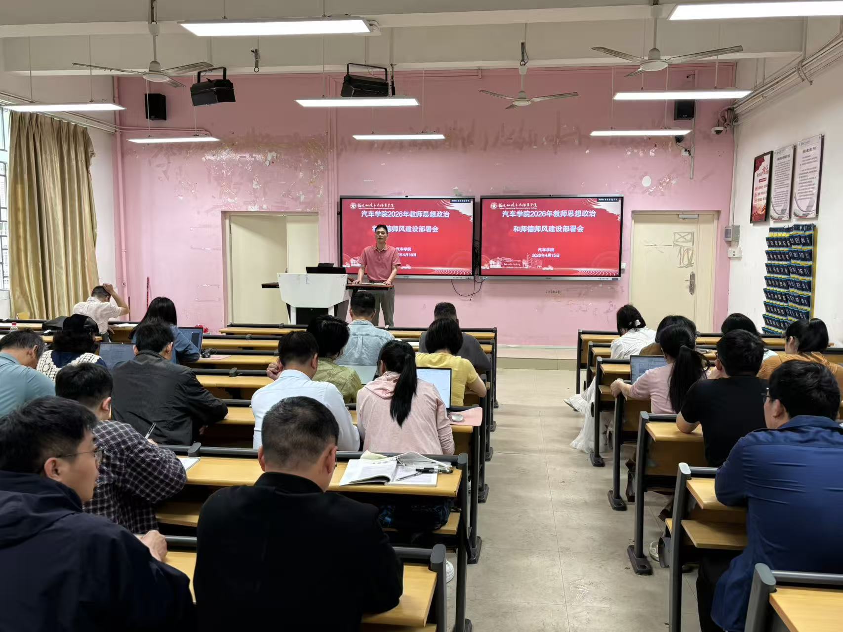 4月15日,学院在2#楼1-3教师召开2026年教师思想政治和师德师风建设工作部署会。会议由学院党总支书记蔡华锦主持,汽车学院全体教职工参加会议。