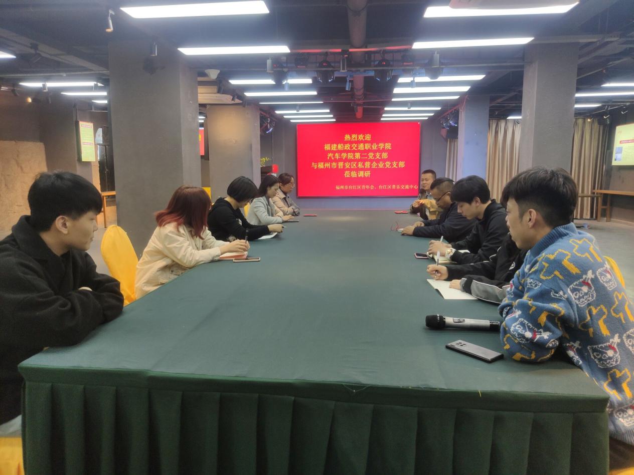 为提升汽车学院第二党支部党建工作水平,加深共建党支部的交流,提高汽车营销类课程新媒体营销教学水平,12月4日,福建船政交通职业学院汽车学院第二党支部与福州市晋安区私营企业党支部走进福州青年会,参观福州青年会旧址、学习福州青年会发展历程和革命历史,并在台江区音乐交流中心开展了共建支部交流活动。福州私营企业党委委员王星华、福州市晋安区私营企业党支部书记程元泉、福建船政交通职业学院汽车学院第二党支部副书记何建、汽车学院汽车服务教研室骨干教师邱华桢、陈爱娟、台江区音乐交流中心林晓铭主任和学生代表等参加了此次活动。