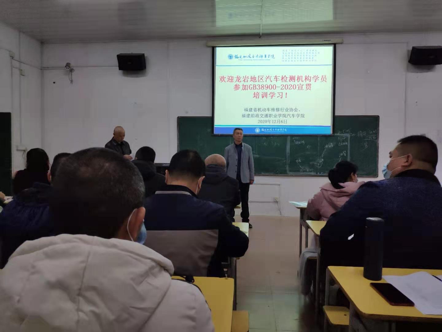 新标准《机动车安全技术检验项目和方法》(GB38900-2020)将于2021年1月1日实施。新标准的出台和实施实现了交通、公安、环保的“三检合一″,实现了一次检验、一份报告、一次收费。避免了重复检测和重复收费。为了帮助检测企业熟悉和掌握新标准的检验项目和方法,2020年12月6日福建船政职业学院联合福建省机动车维修行业协会,在龙岩交通职业技术学校举办新标准宣贯班。在福建船政职业学院教师的精心组织下,参加宣贯的学员达111人,新标准宣贯活动园满结束。