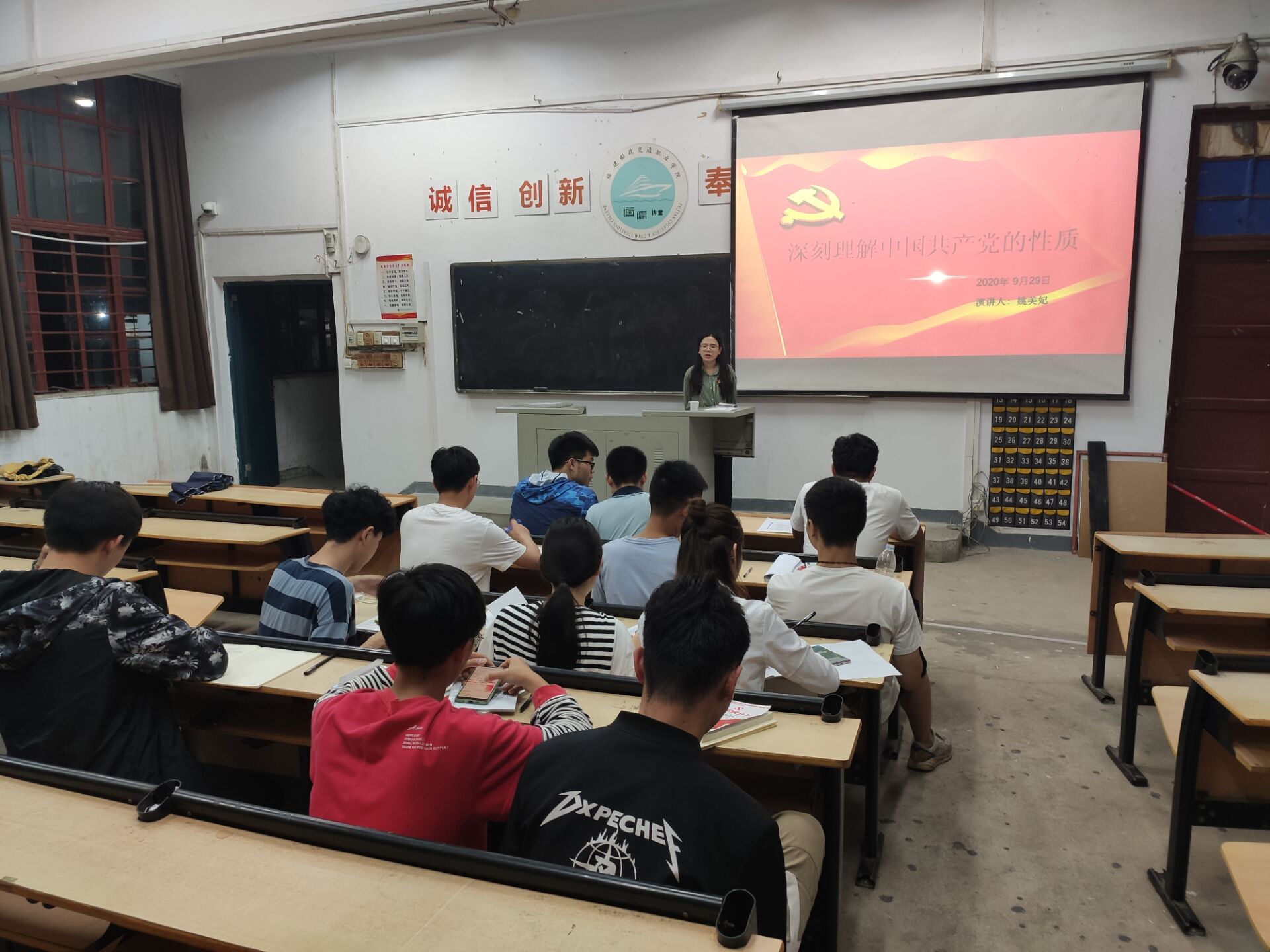 为落实“将骨干培养成党员、将党员培养成骨干”双培养工作,提高党员发展对象政治素质和党性修养。2020年10月16日,汽车学院第一党支部书记姚美妃在北区8号楼217教室为发展对象上《准确把握中国共产党的纲领》、《深刻理解中国共产党的性质》的党课。