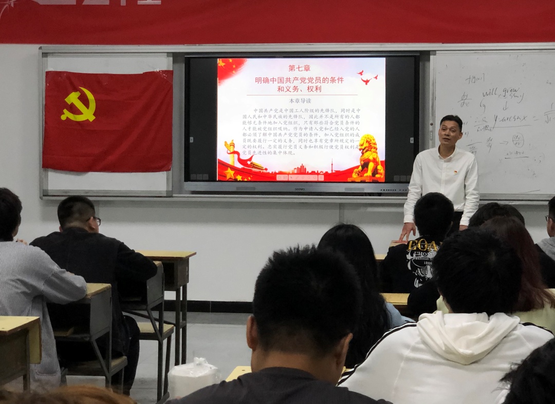 汽车学院党总支书记蔡华锦进行了开班动员讲话,并带领学习了《入党积极分子培训教材》的第七章《明确中国共产党党员的条件和义务权利》、第八章《端正入党动机,争取早日入党》。通过蔡书记的讲解,进一步提高学员政治觉悟,端正其入党动机,加深了对党的知识理解。