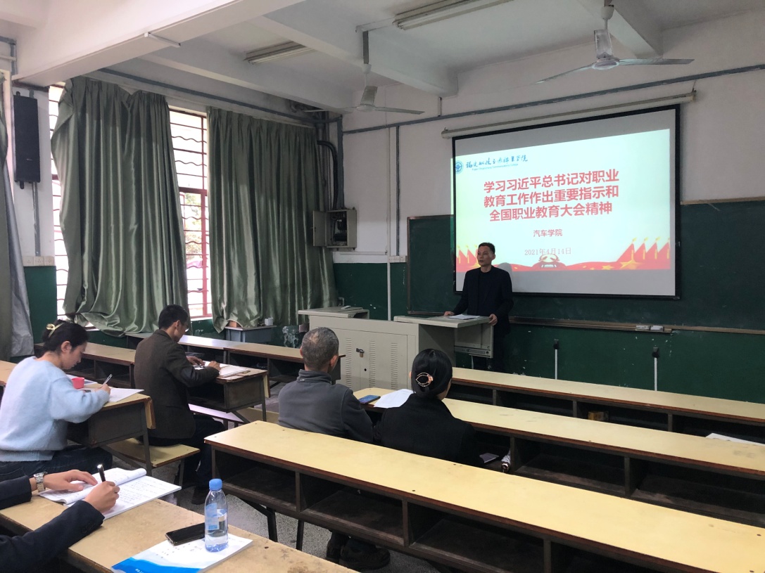 4月14日下午,汽车学院组织学习习近平总书记对职业教育工作作出重要指示和全国职业教育大会精神。