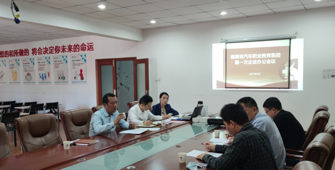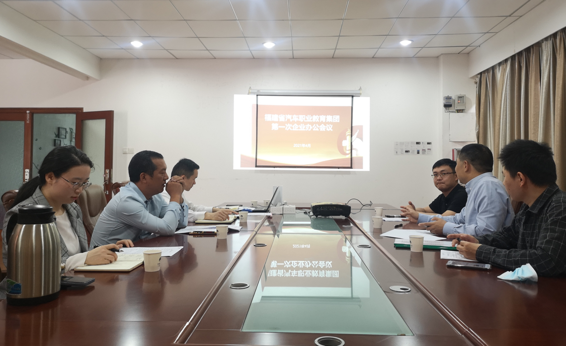 为建立福建省汽车职业教育集团的运行机制(包括对话协作机制、产学研合作机制),提升职教集团的综合服务能力,2021年4月22日(星期四)上午9:00—11:00在福州万商汽车服务有限公司召开福建省汽车职业教育集团第一次企业办公会议,与会人员包括:福建船政交通职业学院汽车学院副院长苏林可春、福州万商汽车服务有限公司总经理(职教集团常务副秘书长)周道平、福州万商汽车服务有限公司技术总监陈育彬、长乐职业中专学校汽车专业教学部主任刘鹏帅老师、福建船政交通职业学院汽车学院(职教集团秘书处)刘国平。
