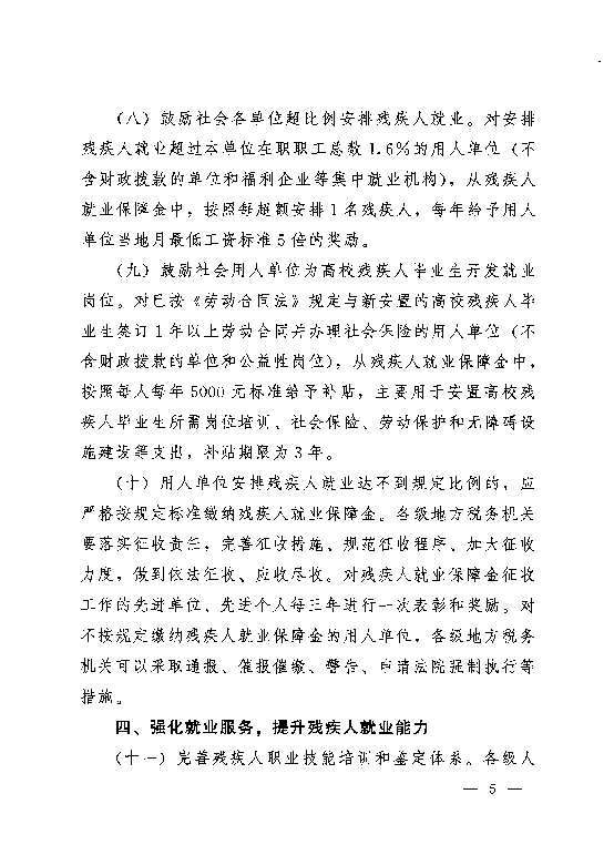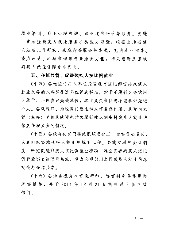 关于促进残疾人按比例就业的实施意见