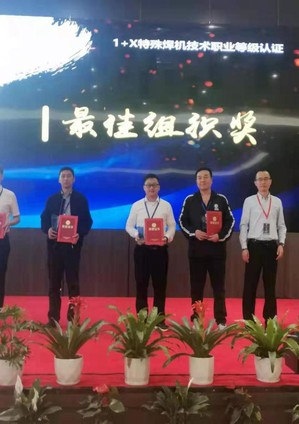 由于我院航海学院1+X特殊焊接技术试点积极配合中船舰客教育开展2020年度特殊焊接技术师资培训以及积极组织学生参与考证,取得较高通过率,高度重视考核组织工作,为培训工作顺利进行提供多方面支持与保障,对1+X证书在全国推广起到积极作用,分别授予“特殊贡献奖”和“最佳组织奖”。航海学院黄建伟老师代表学院领奖。