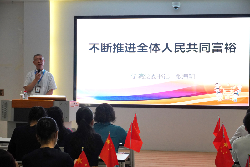 5月24日上午,校党委书记张海明在图书馆三楼党建馆为2021级软件技术1.2班学生讲授《不断推进全体人民共同富裕》专题形势与政策课。