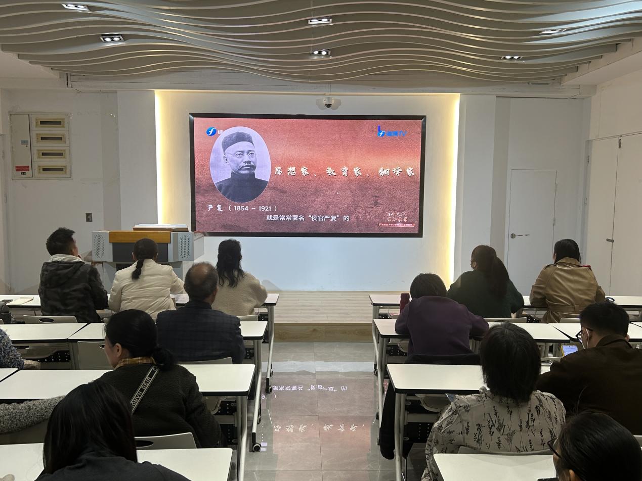 为深入学习贯彻习近平文化思想,纪念严复诞辰170周年,2024年1月2日,马克思主义学院组织全体思政教师在鉴知楼时代大讲堂开展由省委宣传部、省委教育工委和省教育厅联合主办的“百年天演 鉴知未来——福建省大中小学同上一堂思政课”主题学习活动。