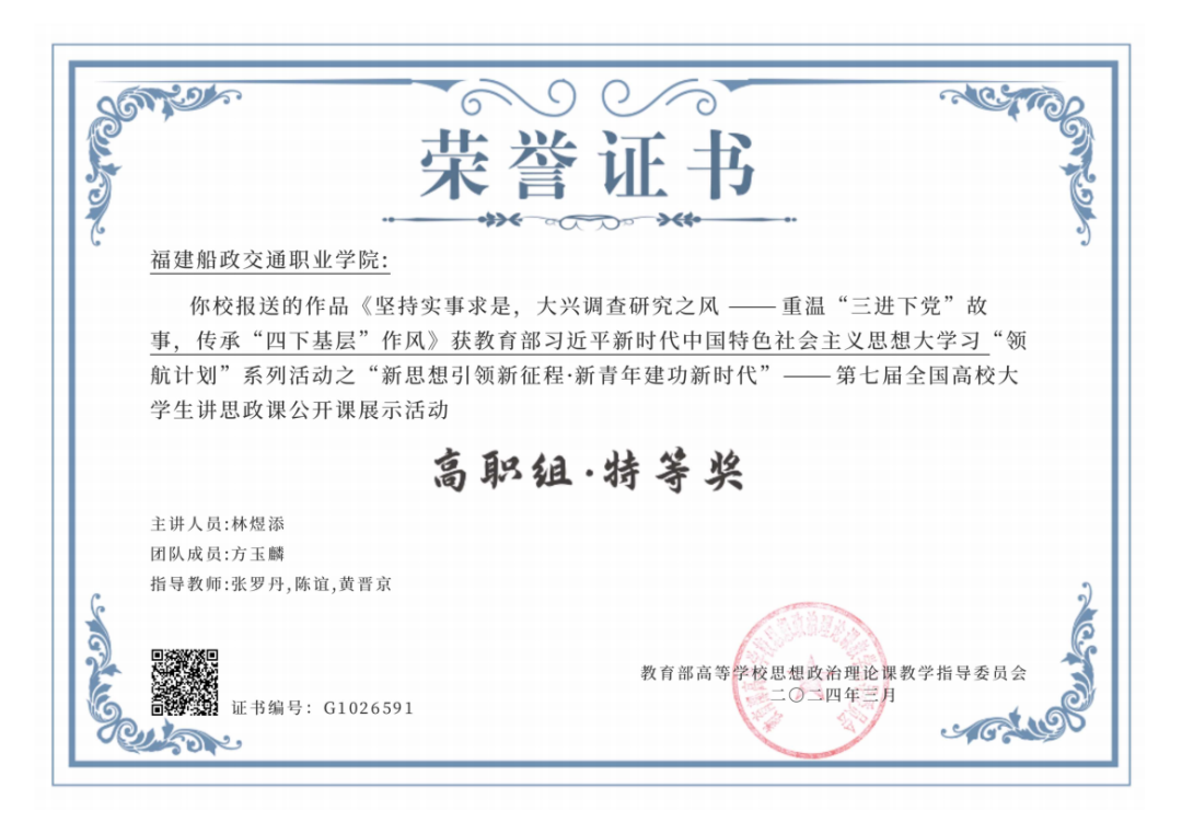 在第七届高校大学生讲思政课公共课展示活动中获高职组特等奖