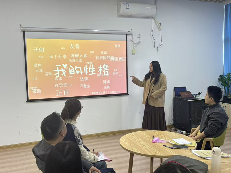 游镜莹老师以“性格探索的实践应用”为主题进行片段试讲。她通过引导学生分析自身性格特质,并结合数字经济、绿色能源等新兴产业案例,设计“性格-行业”匹配任务,帮助学生理解性格特质与职业选择的关联,增强课堂互动性与实践性。