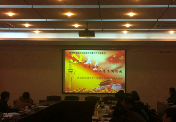 1月9日学院开展了基层党建特色创新案例展示评比活动。我馆选送的案例《大手拉小手 让爱漂流 让书香溢满校——图书馆援建齐安小学图书角及党员结对帮扶活动》在此次比赛中荣获二等奖的好成绩。