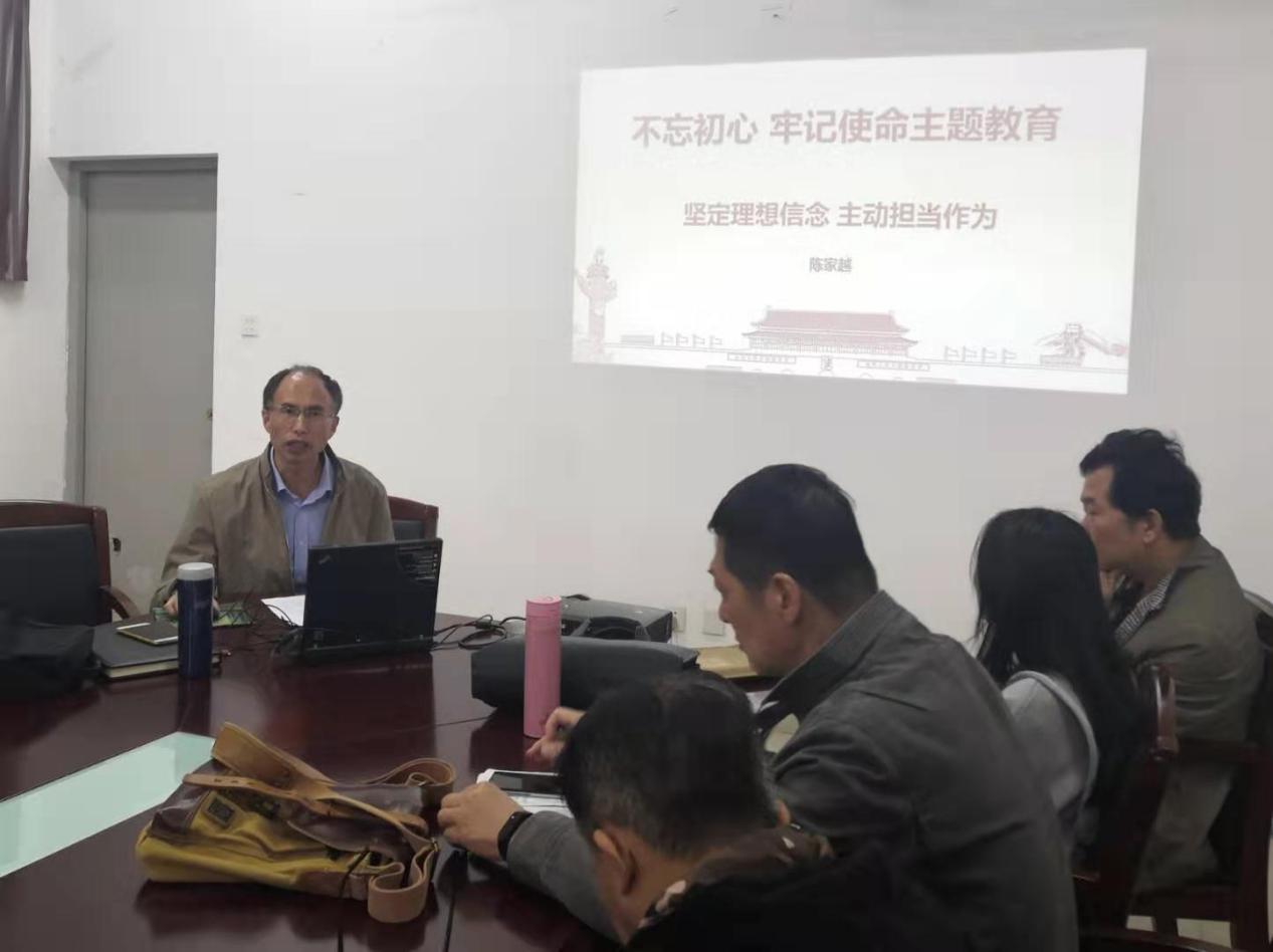 11月21日上午,根据学院“不忘初心、牢记使命”主题教育工作安排部署,图书馆馆长陈家越在馆内9楼会议室为全体馆员做了“不忘初心,牢记使命”的专题党课,他围绕“以坚定的理想信念坚守初习心”、“坚定理想信念永葆政治本色”、“在知行合一中主动担当作为”等三个方面进行了阐述。家越馆长指出,我们要时刻不忘我们党来自人民、根植人民,全体馆员要深入学习习近平新时代中国特色社会主义思想,检视自己的理想信念和思想言行,永葆政治本色,要自觉运用当代中国马克思主义去改造客观世界,在投身实践过程中主动担当作为。