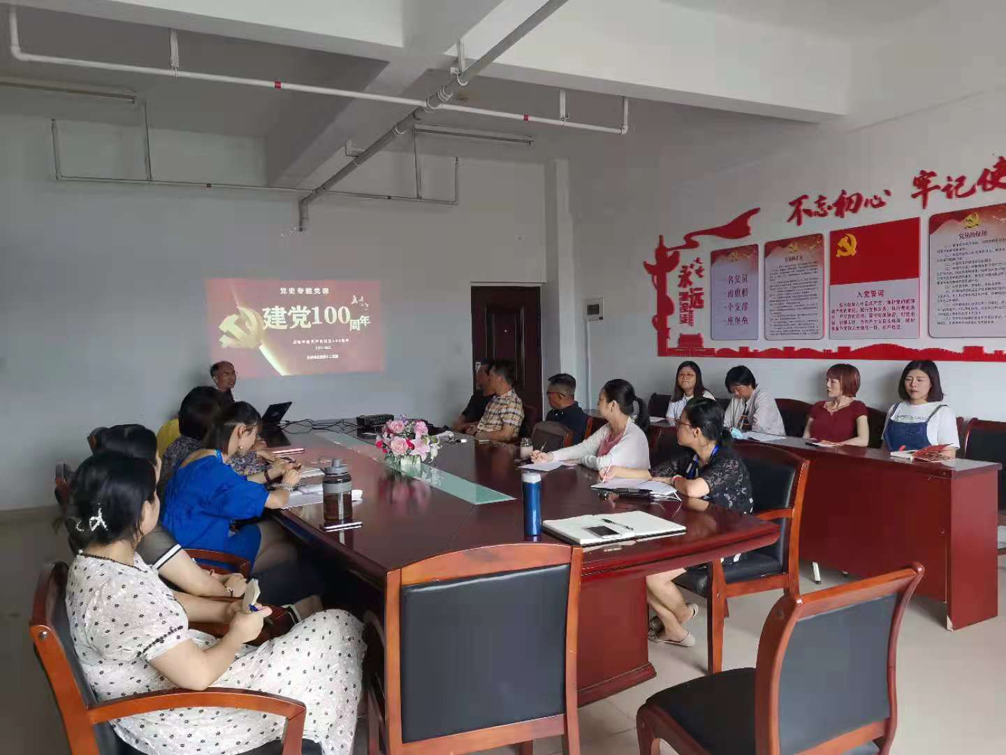 支部书记陈家越同志从共产党的三大历史贡献、党的基本知识、党的光辉历史以及党给我们的三大启示四个方面回顾了中国共产党整整一个世纪不平凡的奋斗历程和所取得的丰功伟绩。支部书记强调,要深刻认识到红色政权来之不易、新中国来之不易、中国特色社会主义来之不易,学党史、强信念、跟党走,真正做到学史明理、学史增信、学史崇德、学史力行。