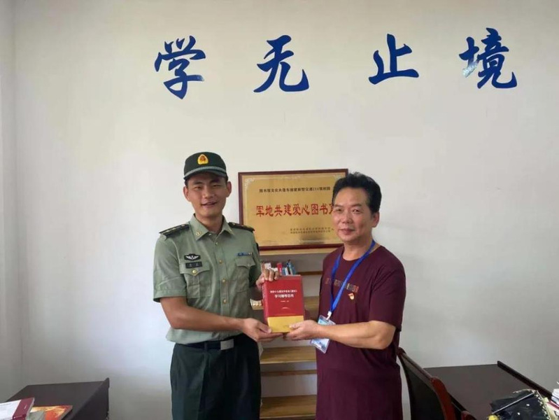 捐赠仪式上大家亲切交谈,学兵营教练员、学兵代表纷纷表示:读书对一个人的成长进步很重要,是凝魂聚气、强基固本的基础工程。此次图书角的建成,为他们提供了学习资源,极大的改善了他们的阅读环境。让他们在辛苦的训练之余,有了更好、更有营养的休闲娱乐。