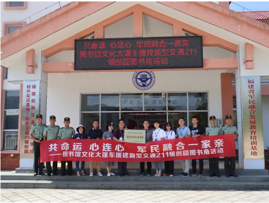 8月29日上午,图书馆党员代表赴武夷山福建船政交通职业学院校外实训基地-新型交通211领创园,开展图书馆文化大篷车援建新型交通211领创园图书角活动。211领创园相关负责人、东部战区陆军军民融合汽车驾驶培训学兵营教练员、学兵代表共同参与了此次活动。