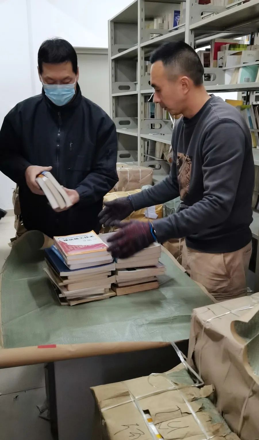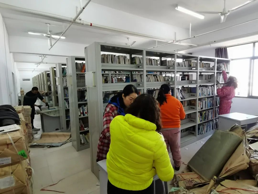 图书馆于开学初就启动了此次图书整理、打包及搬迁准备工作。3月2日当天,图书馆全体馆员及通识学院师生通力合作,配合默契,顺利完成了11楼闭架书库搬迁工作。