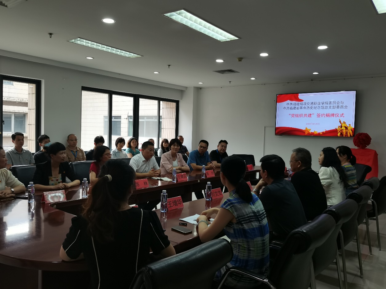 当天,图书馆党支部党员代表参与中共福建船政交通职业学院委员会与中共福建省革命历史纪念馆总支部委员会党组织共建的揭牌仪式。福建省革命历史纪念馆馆长杨卫东及相关部门领导和我校组织部部长张建国、机关党总支书记蒋玲、图书馆馆长陈林以及机关党总支部分党员同志等近30人参加了签约仪式。