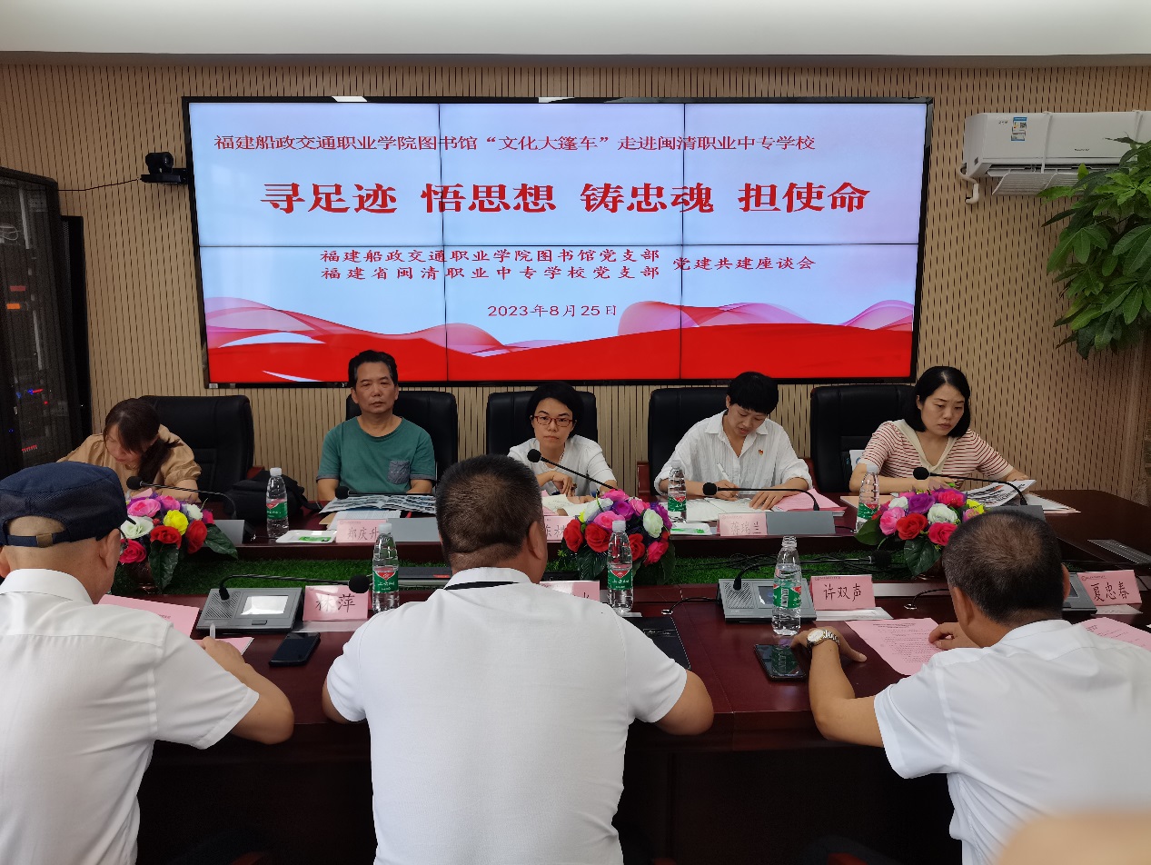 为推进学习贯彻习近平新时代中国特色社会主义思想主题教育走深走实,深入实施深学争优、敢为争先、实干争效行为,教育引导图书馆党支部全体党员坚定理念信念、增强斗争本领,8月25日,福建船政交通职业学院图书馆“文化大篷车”走进闽清职业中专学校,开展“寻足迹、悟思想、铸忠魂、担使命”活动。闽清职业中专学校校长陈友水,闽清职业中专学校党支部书记林萍,学院图书馆馆长陈林等21人出席活动。