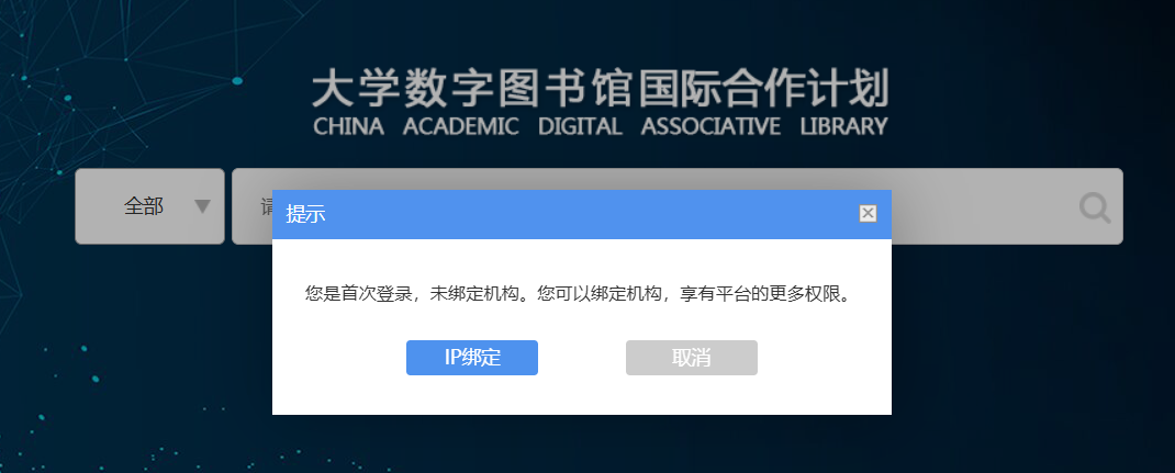 注册用户在校园网内登陆后,可在“个人设置”中进行IP绑定机构,账号直接拥有该单位权限。认证通过后可在校外访问与校内同等权限的资源。