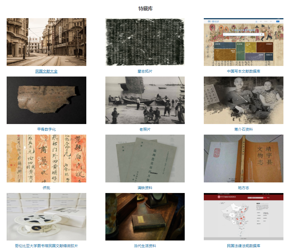 同时,CADAL还提供民国文献大全、墓志拓片、中国写本文献数据库、甲骨文数字化、老照片、蒋介石资料、满铁资料、侨批、哥伦比亚大学图书馆民国文献缩微胶片、当代生活资料、民国法律法规等特藏库,以及中国书法系统、中国文学编年史等特色数据库。