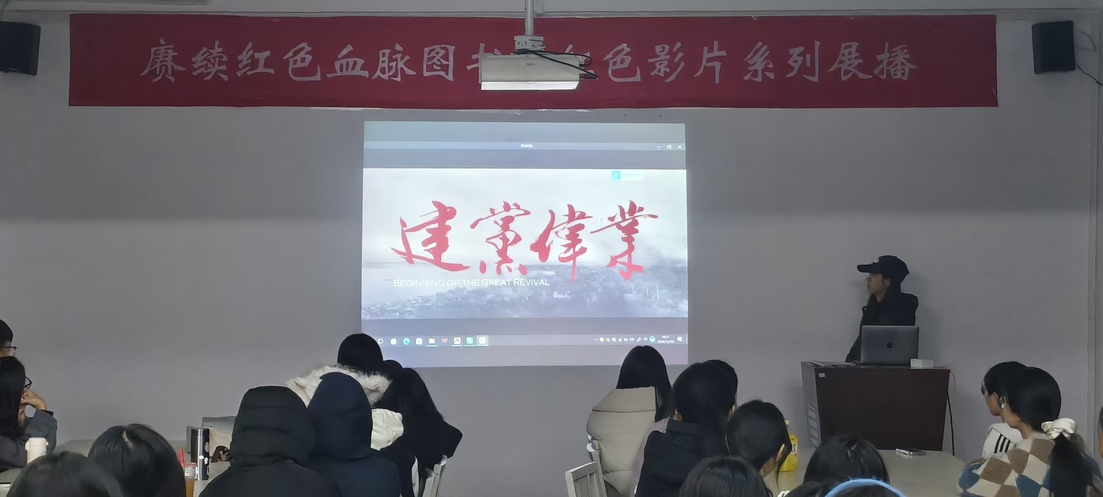 展播过程中,影片生动再现了从辛亥革命到中国共产党成立期间的峥嵘岁月,清晰勾勒出革命先辈为探寻救国救民道路奔走呼号、不懈抗争的艰辛历程,让在场同学们沉浸式感受了老一辈革命者坚定的理想信念与责任担当。