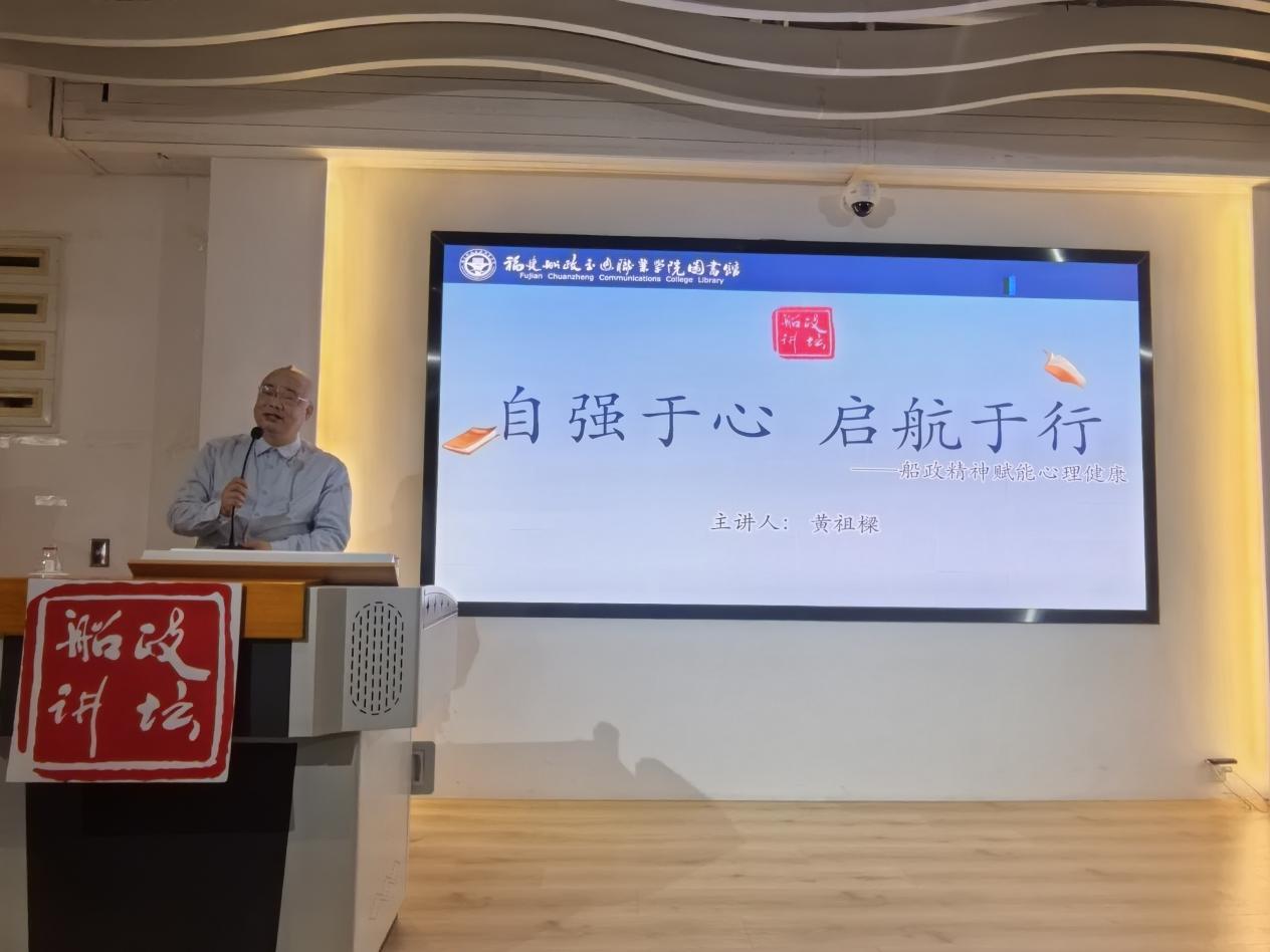 百余年前,马尾船政先贤开风气之先,于山海之间铸就了向海图强的精神丰碑。当我们身处快节奏的现代社会,面对学业、工作和生活的种种压力,如何以船政精神赋予新的能量,我们又该如何在人生的风浪中“启航”,保持内心的从容与坚定?3月11日下午,船政讲坛《自强于心 启航于行——船政精神赋能心理健康》专题讲座在鉴知楼三楼时代大讲坛成功举行。活动特别邀请知名心理学专家黄祖樑老师担任主讲,师生代表100多人参加了讲座。