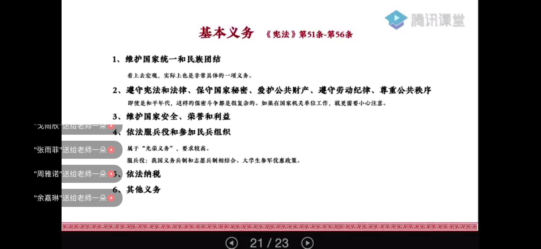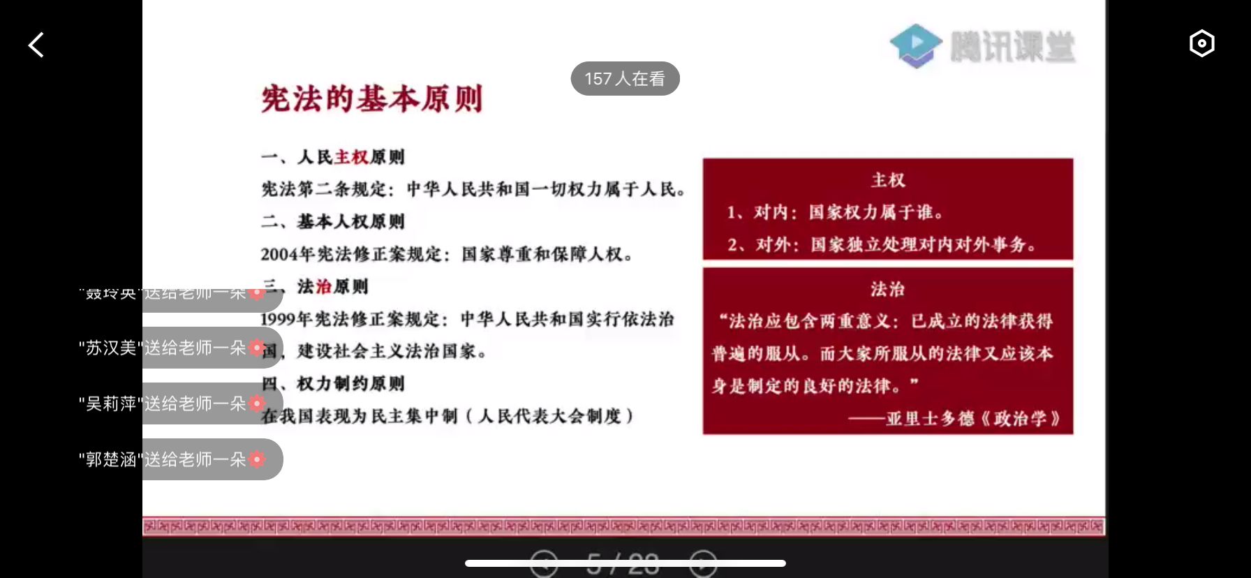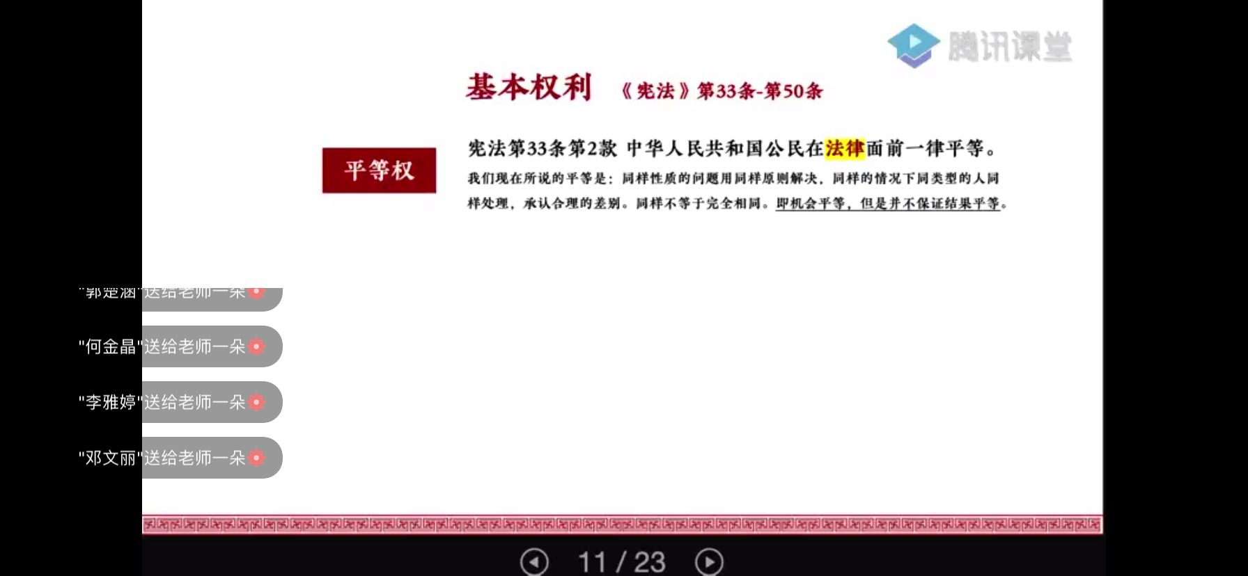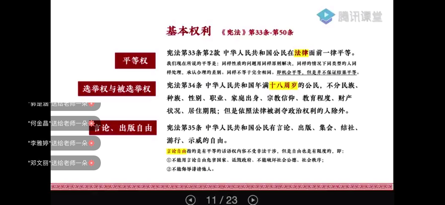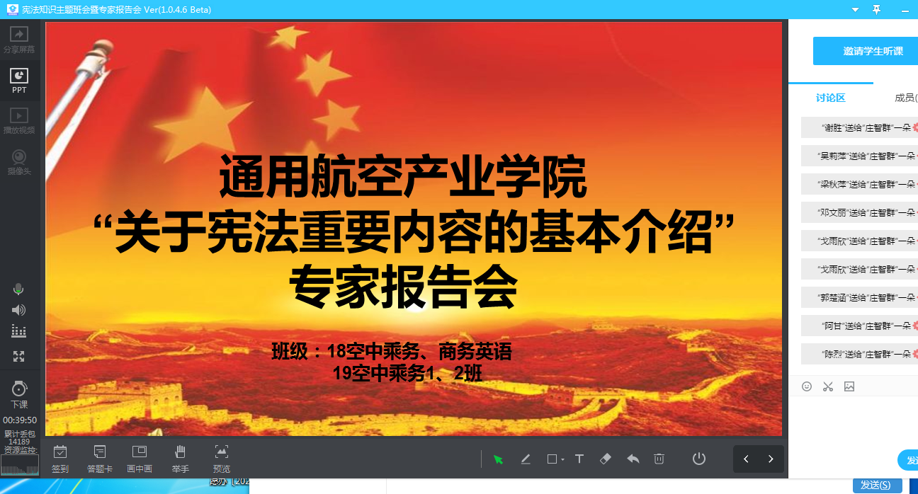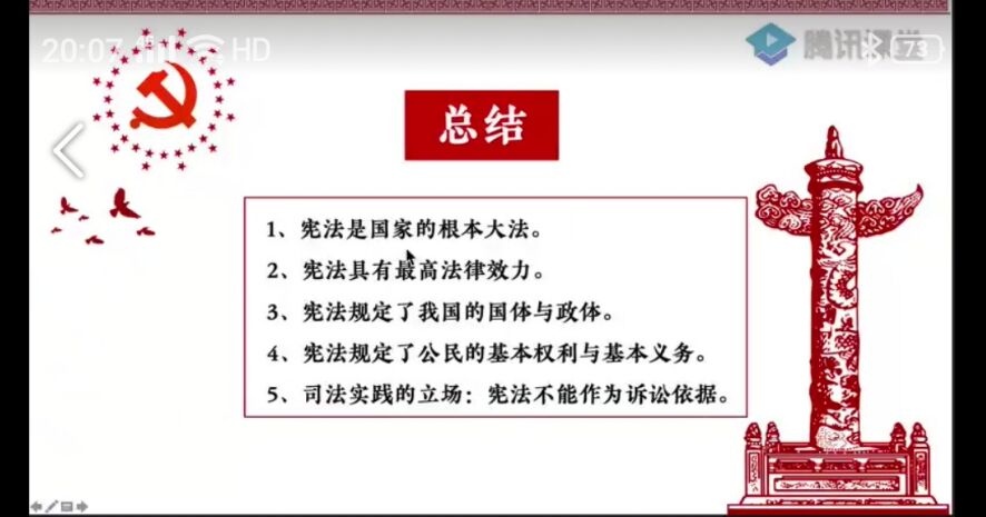 通过腾讯课堂的渠道,把宪法的知识传授给同学们。专题会上林律师就宪法内容的几大要点,作了深入浅出的讲授。