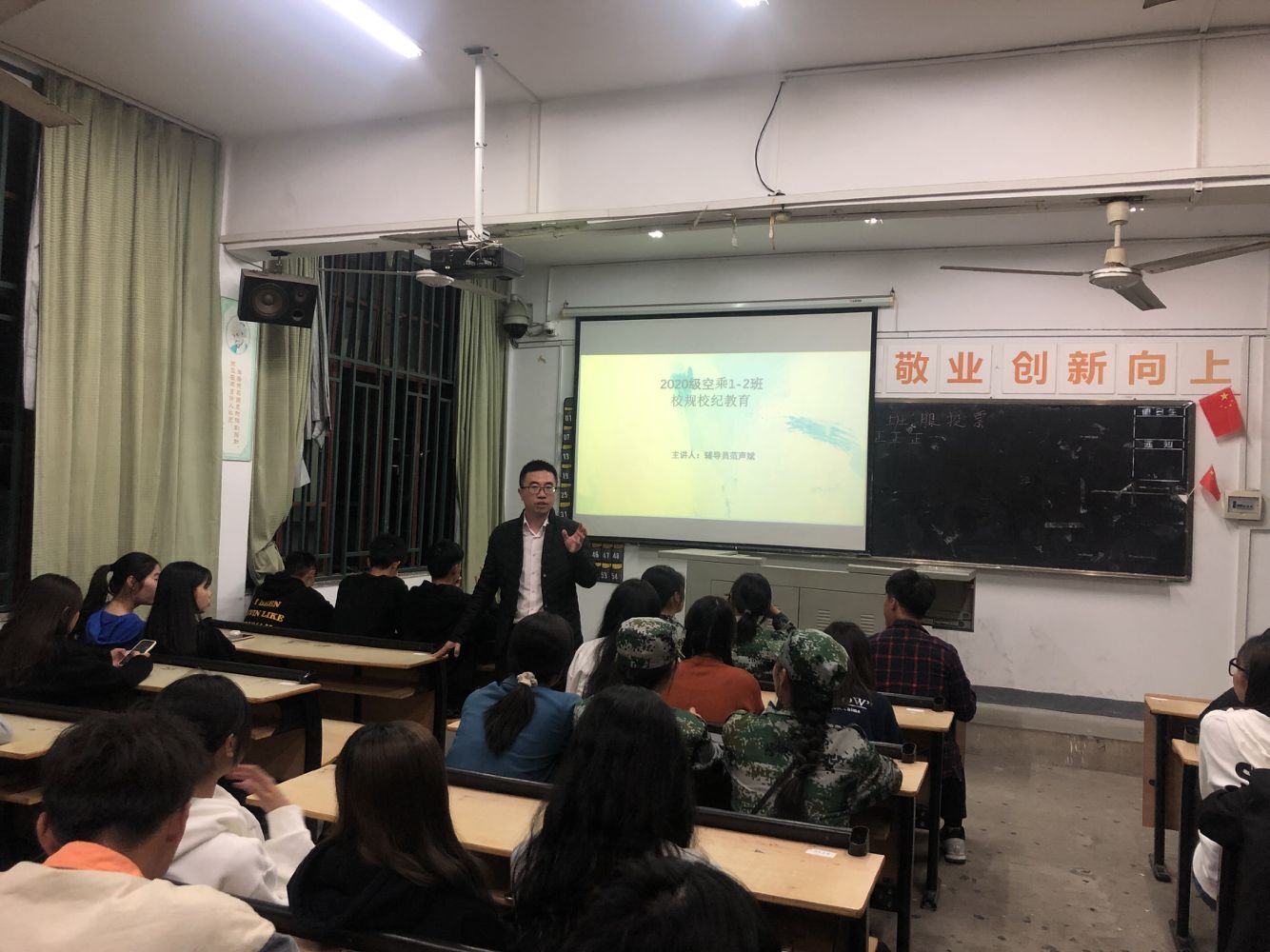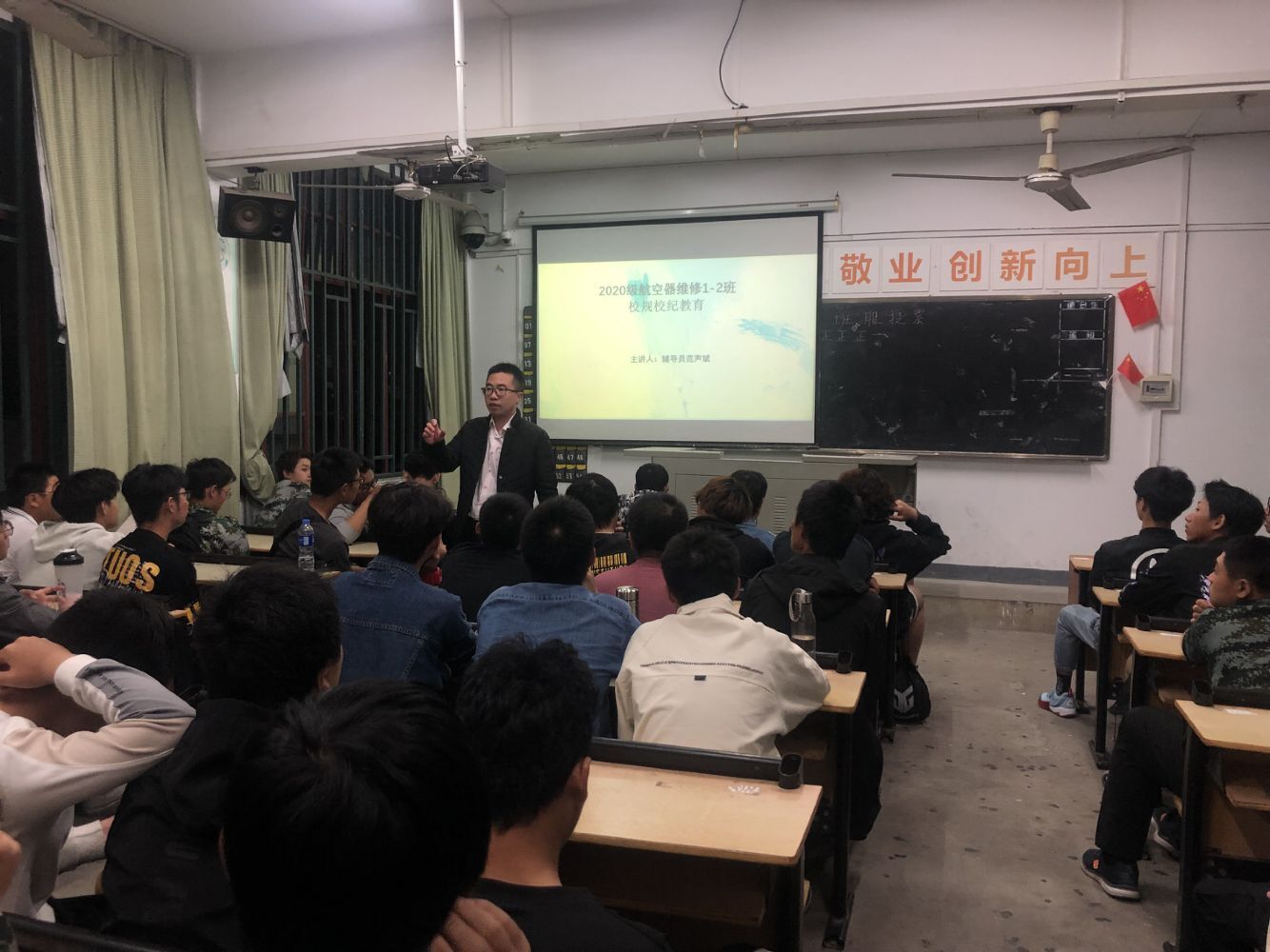 俗话说“不以规矩,不成方圆”。国有国法,家有家规,学校也有自己的规章制度。为了让2020级新生切实有效地知晓福建船政交通职业学院的校纪校规,养成良好的行为规范,通用航空产业学院于11月6日在8号教学楼417分别给2020级新生召开了以“校规校纪”的主题班会。本次主题班会由新生辅导员范声斌老师主持,全体2020级新生参加。