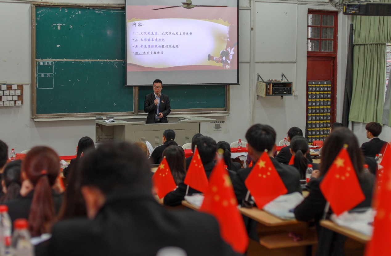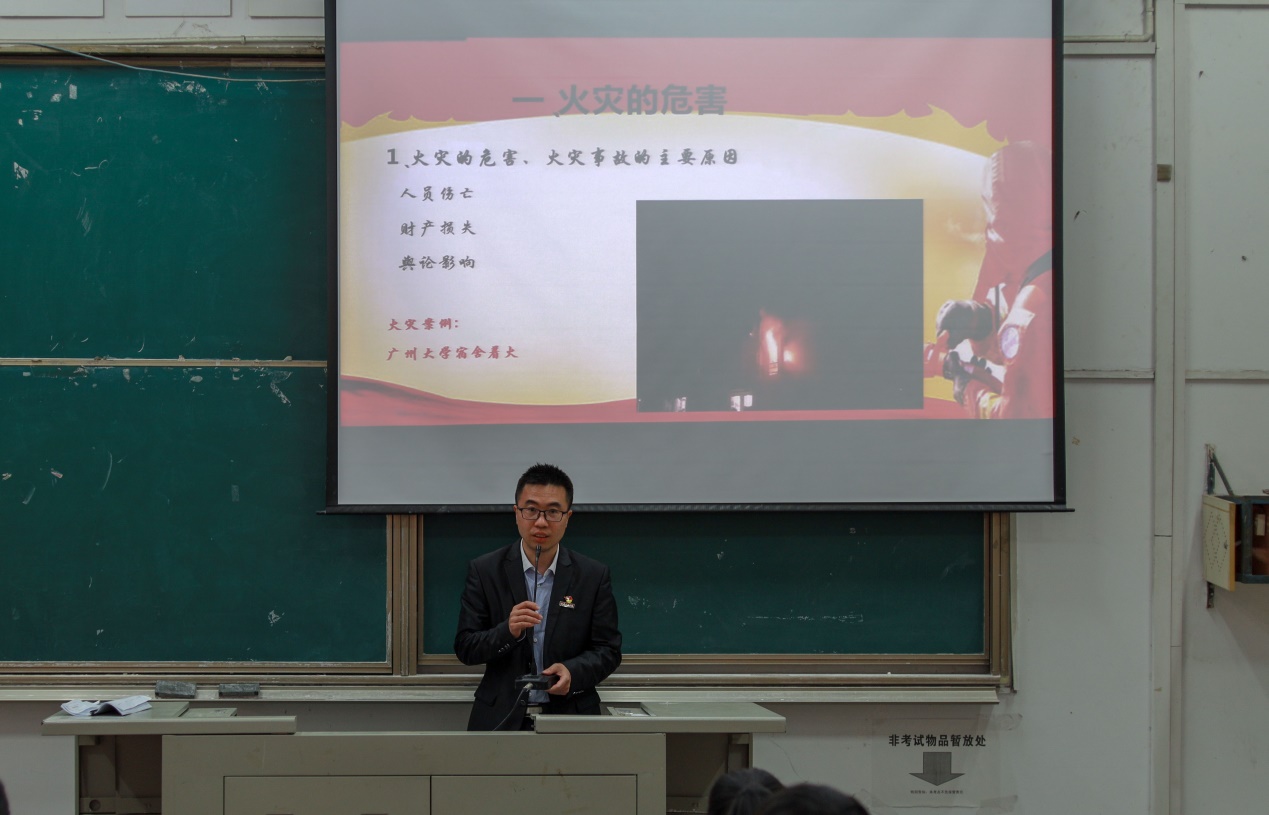 首先,辅导员范声斌为大家讲解了基本消防安全制度,并简要介绍相关法律法规,旨在使大家形成基本消防观念。而后从火灾的危害、火灾事故的主要原因;火灾的基本知识;常见消防设施器材及使用;逃生自救方法;宿舍防火“十戒”等五个方面生动的讲解了消防安全知识,为学生们上了一堂精彩的安全消防安全培训大课。随后是答疑时间,学生们对各种消防安全知识进行询问,辅导员范声斌认真作答。
