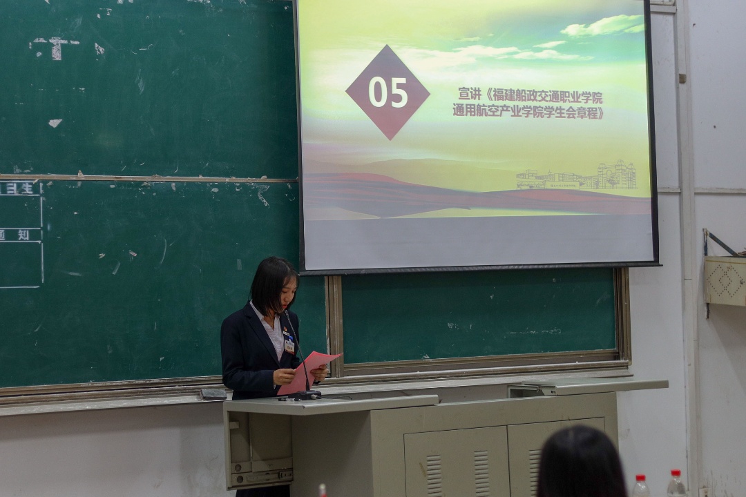 潘静茹同学宣读《福建船政交通职业学院通用航空产业学院学生会章程》(修订案)