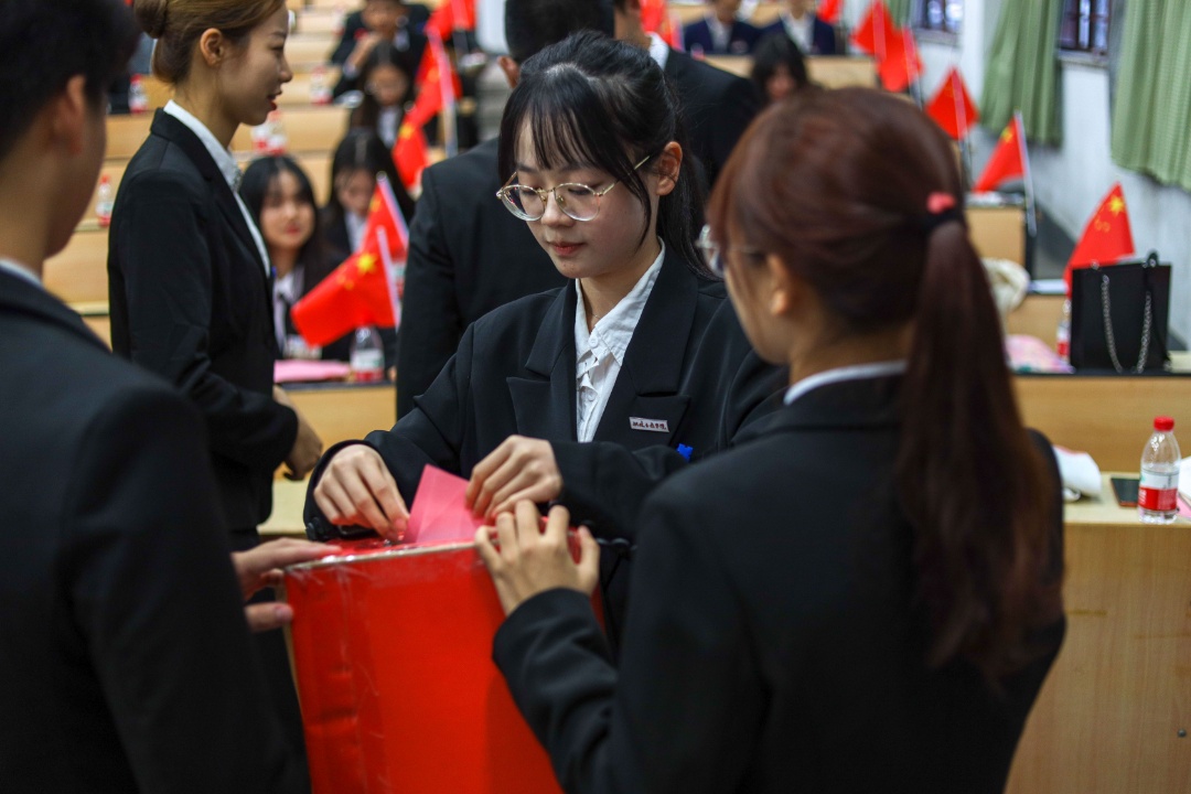 随后,大会选举新一届学生会主席团,大会本着民主、公开、公正的原则,采用无记名差额选举的投票方式选举,通过选举李彦鹏、翁杰宇、蔡意珍为第一次学生代表大会的学生会主席团。