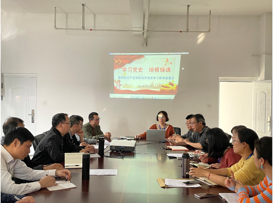 3月17日,通用航空产业学院在北区图书馆12楼会议室召开党史学习教育动员部署会,学院全体老师参加会议。会议由党总支副书记苏汉美主持。