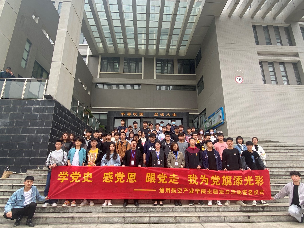 学党史、悟思想、办实事、开新局。为庆祝建党100周年,通用航空产业学院于4月14日下午在图书馆12楼会议,举行“学党史、感恩党、跟党走,我为党旗添光彩”承诺签名活动。我院全体教师、师生党员、入党积极分子百余人参与活动。