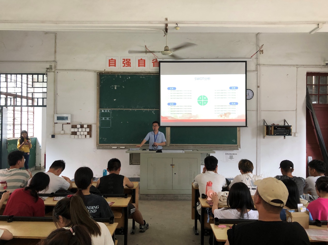 在班会前范老师做了充分的准备,用ppt以及各种视听结合的形式,向同学们展示职业的规划流程。结合自身职业经验和工作经历,分析了一下同学们未来以及现在的状况和如何面对自己对未来的规划,鼓励同学们不要在闲暇的时候打游戏,可以多参加院系社团活动、志愿服务或者买点书籍看看让自己变充实。随后就职业认知、职业定位和当期的就业形势和同学们进行了更深入的探讨。