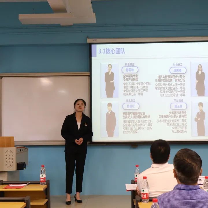 本次大赛我们有幸邀请到创新创业学院院长林霞、创新创业学院副院长王登清、创新创业学院指导老师雷筱珍、福州奇拓电子有限公司董事长付月华,担任通用航空产业学院第一届“创翼”大学生创新创业大赛的评委。同时我们也邀请到通用航空产业学院的领导和全体老师莅临比赛现场。