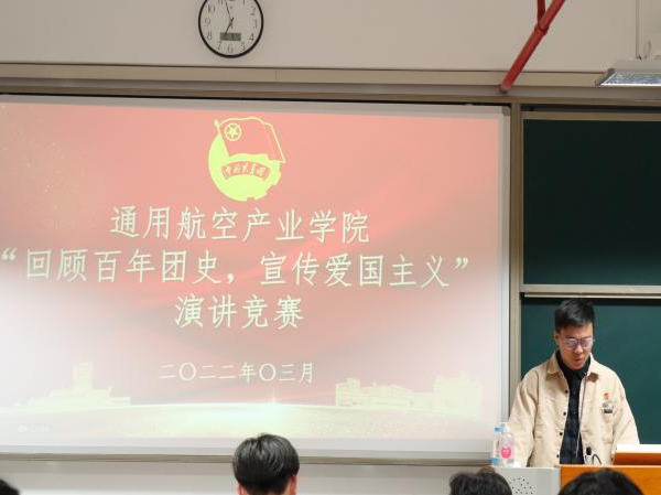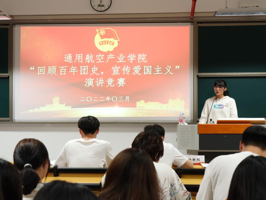 2022年3月13日通用航空产业学院在南区综合实训大楼605教室开展了“回顾百年团史,宣传爱国主义”演讲竞赛活动。此次演讲竞赛,深入贯彻落实科学发展观,激发传承文明和开创未来的热情,增强青年大学生的爱国主义精神,全面提升自身素质,肩负起祖国的未来。一代人有一代人的责任,我们看着先辈们点燃的星星之火,已成燎原之势,我们光华灿烂的世界,已在眼前。正值青春的我们,抓着先辈们身上的光,催生出脚下坚定的力量,也会努力成为一个光点,接过艰苦奋斗的接力棒,以一往无前的奋斗姿态和永不懈怠的精神状态,勇挑重担、苦干实干,在新时代新征程中留下许党报国的奋斗足迹。