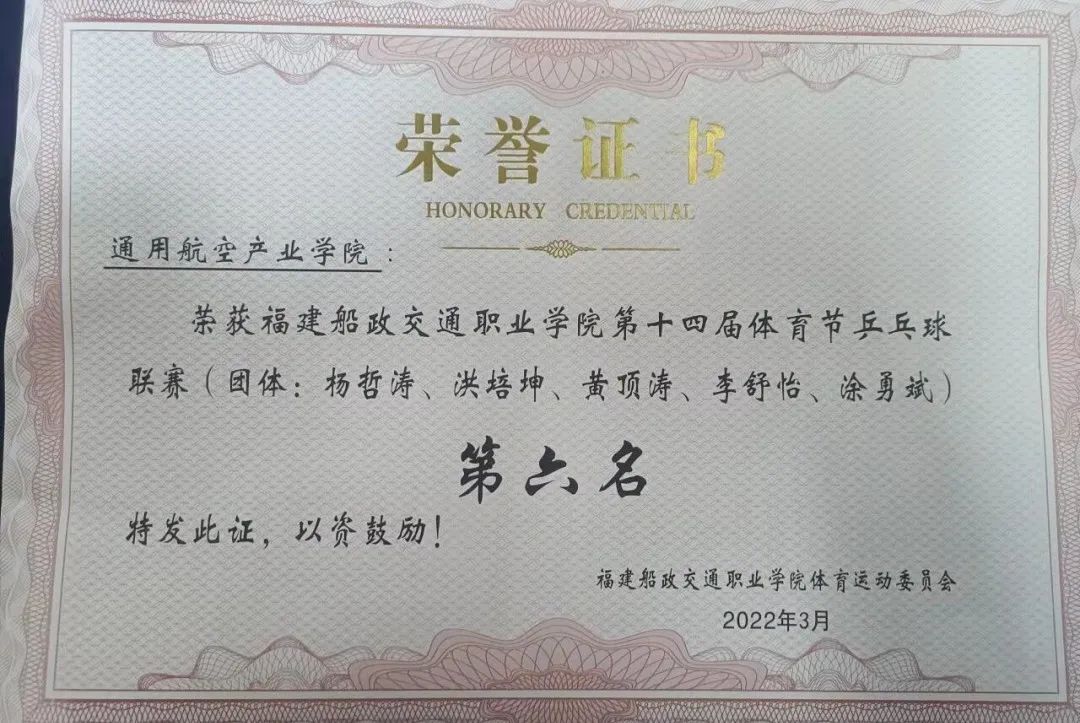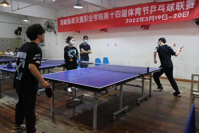 奋斗百年路,启航新征程。为庆祝建团百年,增强我校同学们的身体素质,提高我校乒乓球运动水平,并弘扬国球精神,于2022年3月19日至2022年3月20日在福建船政交通职业学院北区乒乓球馆举办福建船政交通职业学院第十四届体育节乒乓球联赛。