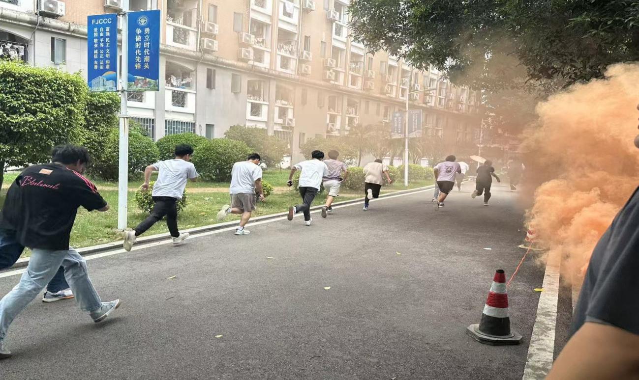 活动前期的准备阶段,学院通过微信、QQ通知及主题班会等多渠道开展宣传,让学生明确活动目的与意义。演练开始前,学院组织各班学生集中观看安全视频,掌握火灾避险要点。工作人员精心布置场地,沿疏散路线安排了多名引导人员,为演练有序开展做好了准备。