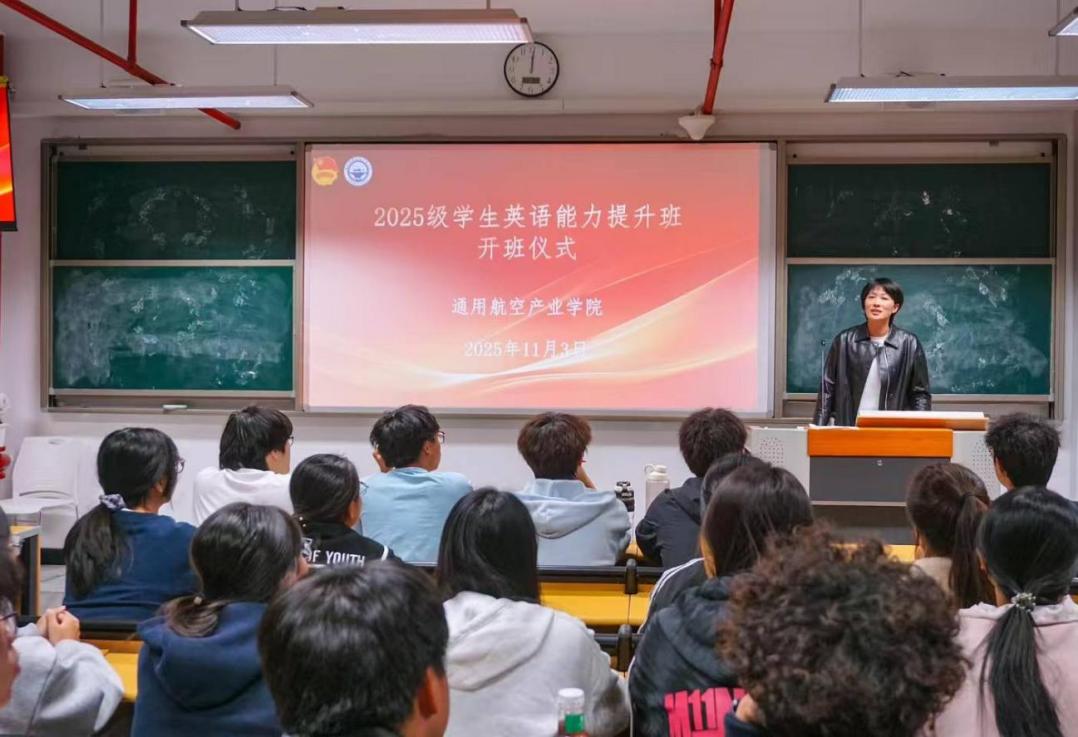 为全面提升学生英语综合能力与素养,助力学子备战大学英语四级考试,11月3日,通用航空产业学院英语能力提升班开班仪式在艺新楼顺利举行。学院领导及专业负责人参加本次活动。