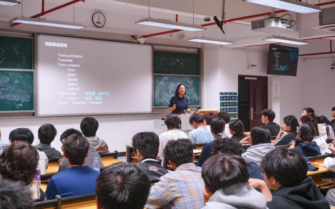 随后,陈瑞娟老师呈现了一堂精彩课程。她从基础语法讲到词根构词法,通过“Transportation”等实例,帮助学生在理解句子结构的基础上掌握词汇记忆规律。同学们在活跃的课堂气氛中实现了知识的融会贯通。
