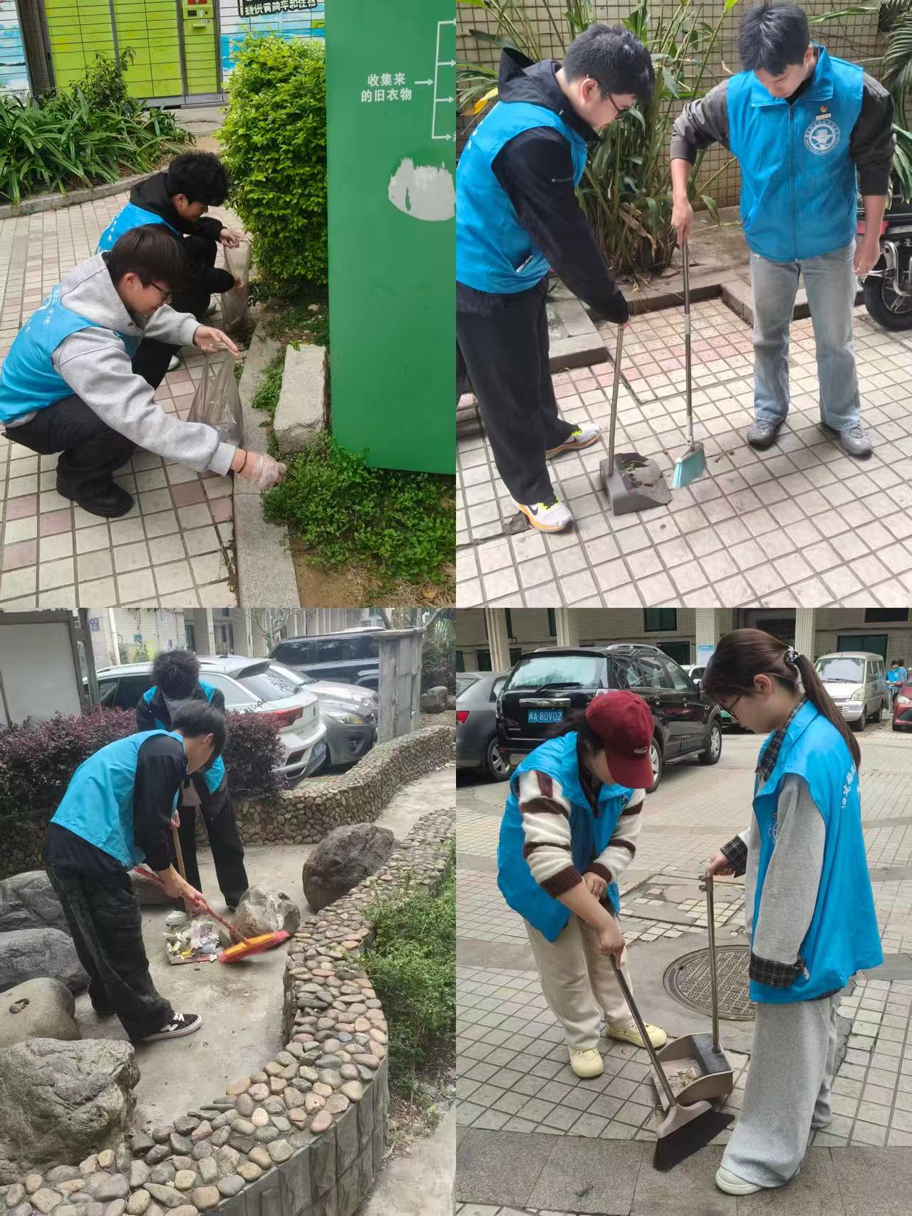 活动现场,志愿者们身着统一的蓝色志愿服,手持扫帚、垃圾袋、等清洁工具,迅速投入到清扫工作中。大家分工协作、干劲满满,重点对社区主干道、楼道拐角、绿化带及卫生死角进行了全面清理,认真捡拾烟头、纸屑、塑料袋等生活垃圾,不放过任何一处细节。志愿者们弯腰清扫的身影,成为社区里一道温暖的风景线。