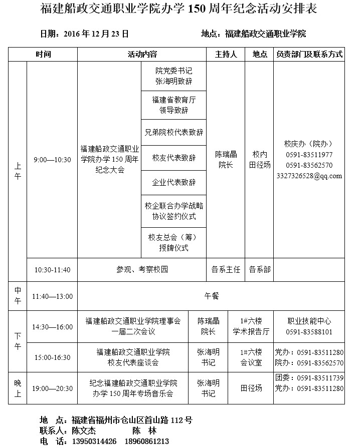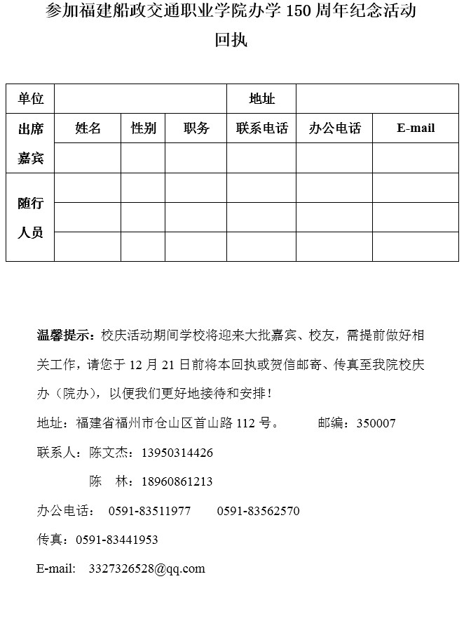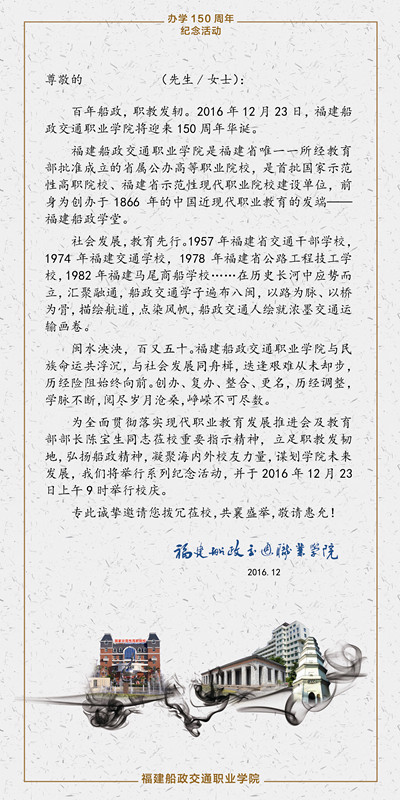 福建船政交通职业学院办学150周年纪念活动邀请函