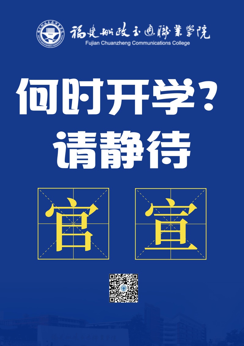 根据福建省委教育工委、省教育厅“在疫情得到有效控制前学生不返校、学校不开学”的要求,学院将科学评估开学条件,审慎研判开学时间,并提前一周通过福建船政交通职业学院官网(网址:http://www.fjcpc.edu.cn/)和官方微信公众号公布。