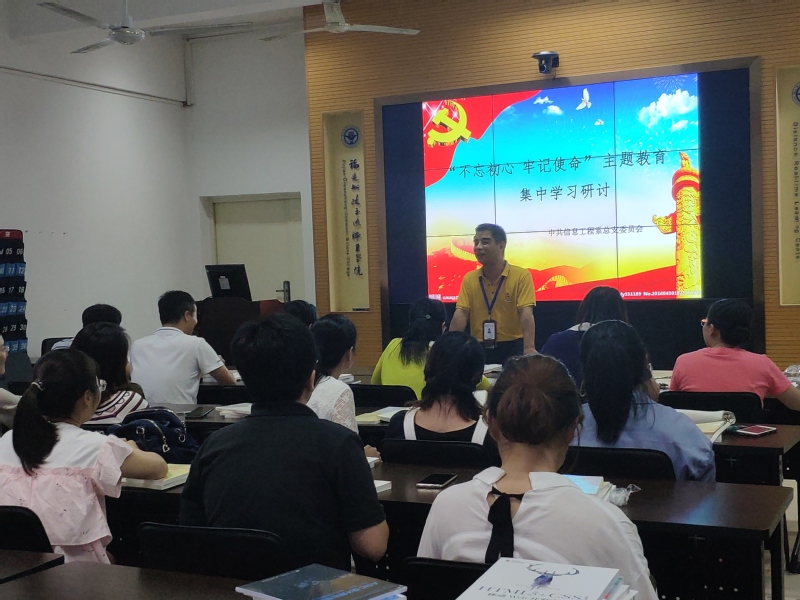 10月9日下午,信息工程系党总支组织召开 “不忘初心、牢记使命” 主题教育集中学习研讨活动,集体学习了《习近平新时代中国特色社会主义思想学习纲要》节选,党总支孙基书记围绕学习贯彻落实习近平新时代中国特色社会主义思想、习近平总书记关于“不忘初心、牢记使命”重要论述,以及习近平总书记在庆祝中华人民共和国成立70周年大会上的重要讲话精神,带头进行了发言研讨。