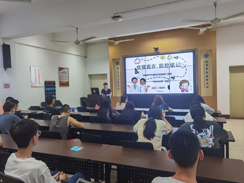黄金凤主任从现阶段国内外新冠疫情、新冠肺炎的预防及生活中如何预防新型冠状病毒肺炎三个方面对疫情防控进行了讲解。她通过具体的数据分析了当前国内外疫情形势的严峻性,并提醒广大学子做好新冠肺炎的预防,做好开学前的预防工作及返校后的校内管理工作。同时,也向学生们介绍了生活中疫情防控小知识,大大增强了同学们的疫情防控意识。