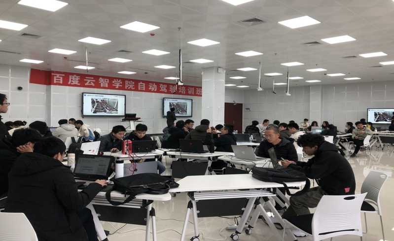 12月21日上午由百度云智学院认证讲师陆俊和冯宗宝为学生提供自动驾驶技术的理论知识。下午由冯宗宝老师带领学生学习实验平台与基础知识并进行了在线实验、实车操控。在轻松愉悦的学习环境下,第一天悄然过去。