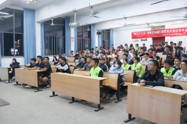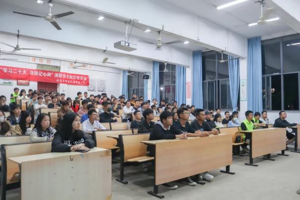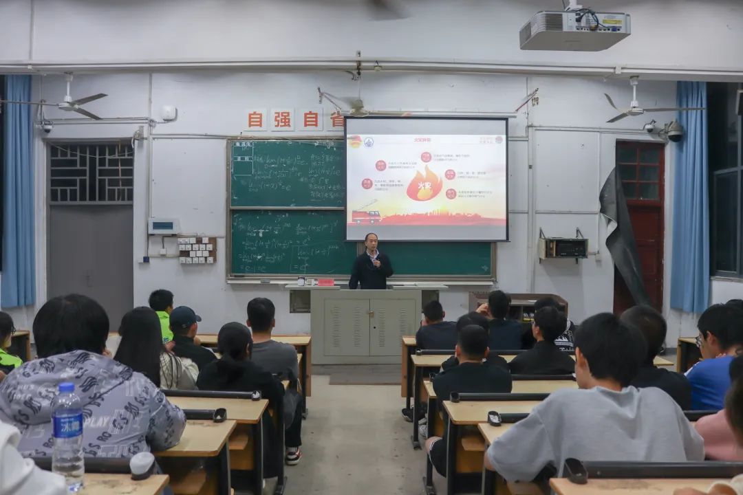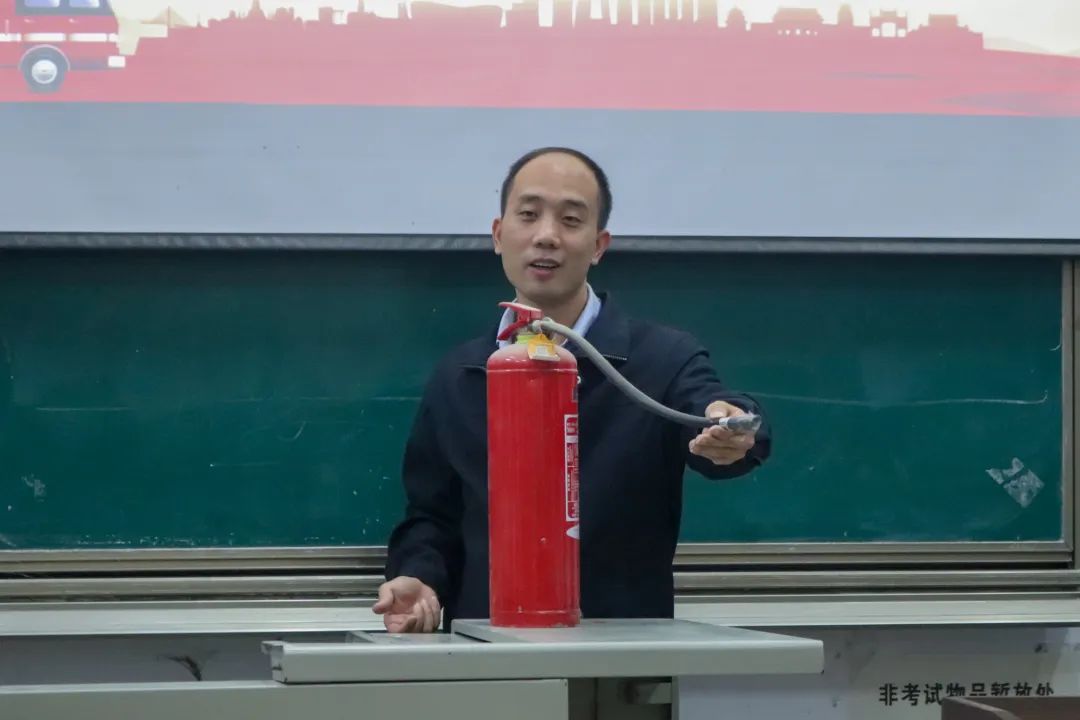 郑佳伟老师从“消防安全法规基本知识”“学校各场所火灾视频案例”“起火与预防火灾基本知识”“救火与灭火器基本知识”四个主题出发,将消防安全知识和生活中的真实案例相结合,生动形象地将知识讲授给同学们。他讲述的案例也为同学们敲响了警钟,提醒同学们重视生活中潜藏的消防安全隐患。