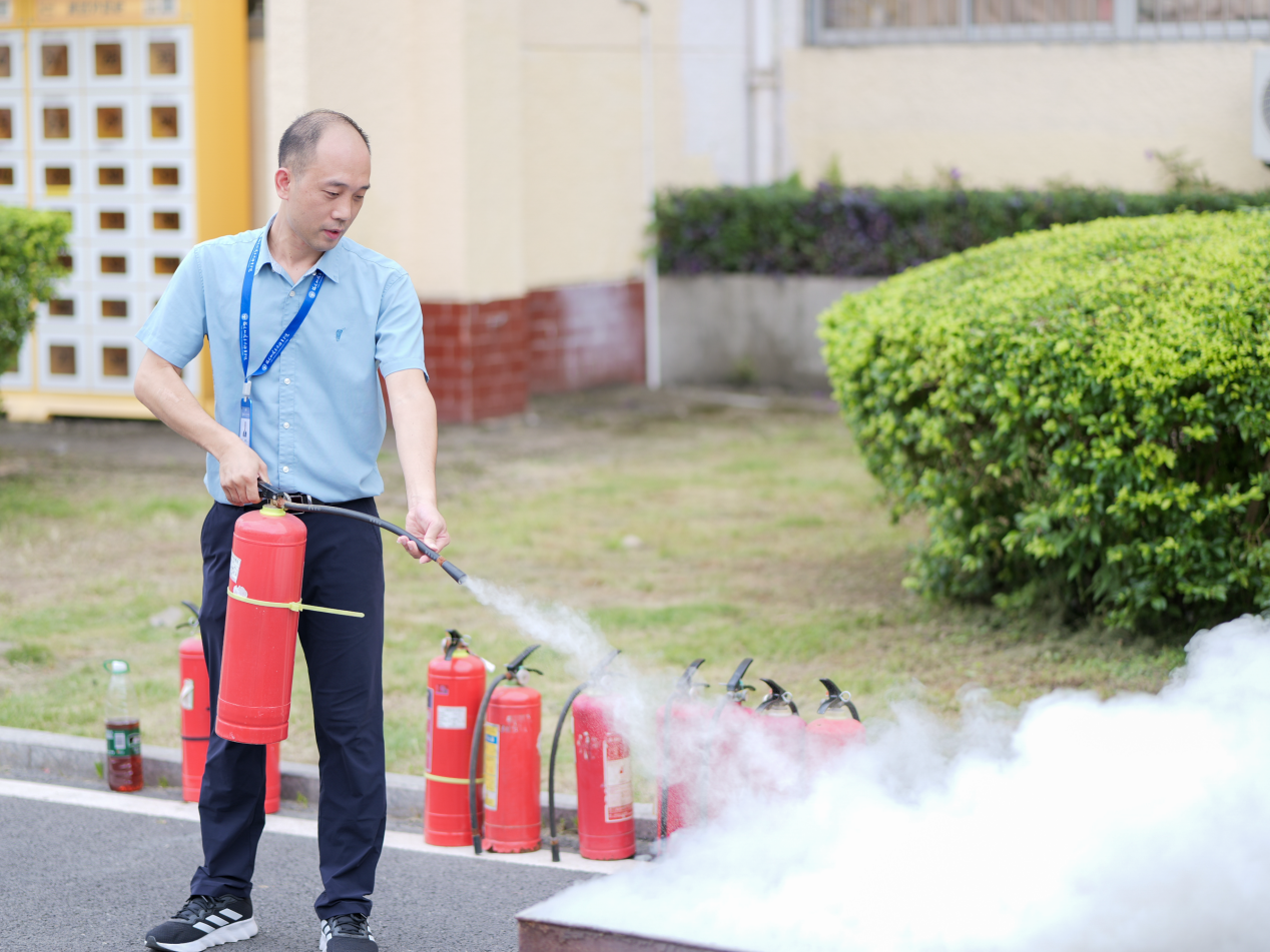在演练现场,郑佳伟老师亲自讲解并示范了该如何使用灭火器。