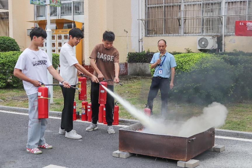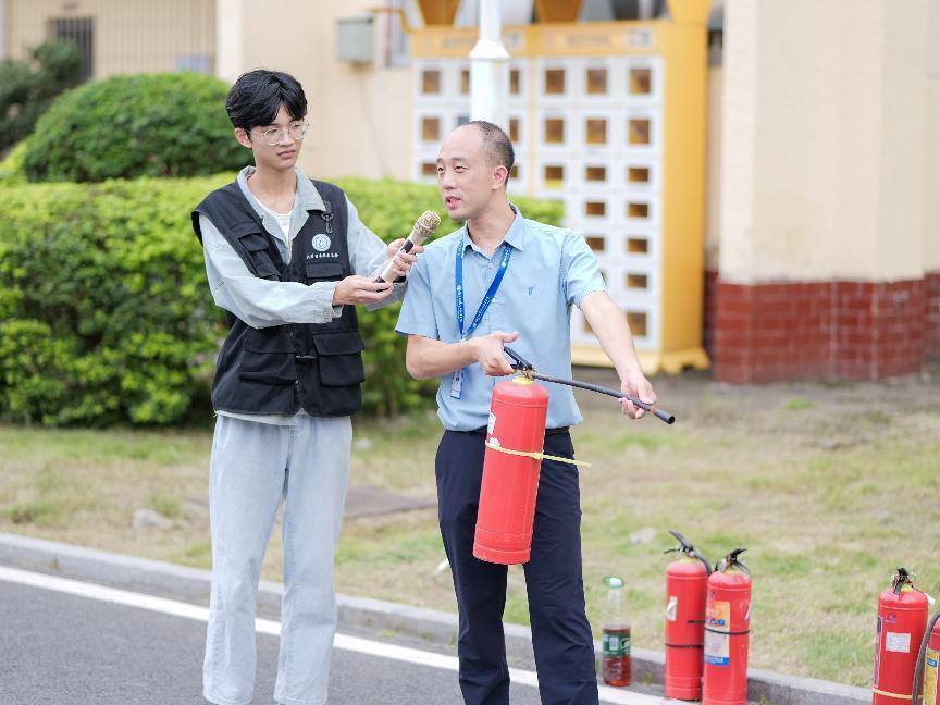 学生代表进行现场模拟操作。同时,郑佳伟老师还针对日常生活中常见的安全隐患进行了详细说明,并讲解了一些简便有效的防火技巧,以帮助师生们更好的保护自身。